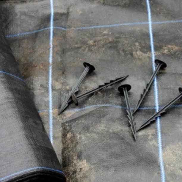Stand on the Mypex to hold it, and tuck the Mypex edges into the soil with a sharp, straight up, straight down motion, like in our country hedge planting video, or use plastic pegs.
