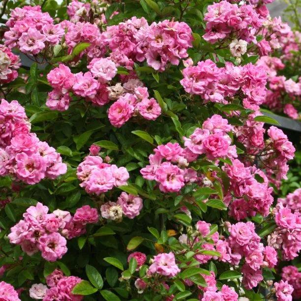 - Colour: Deep carmine-pink, loosely double, in good-sized clusters